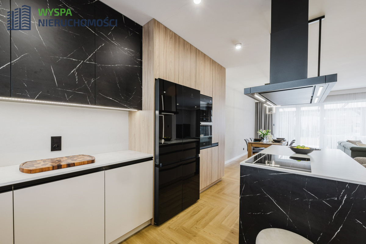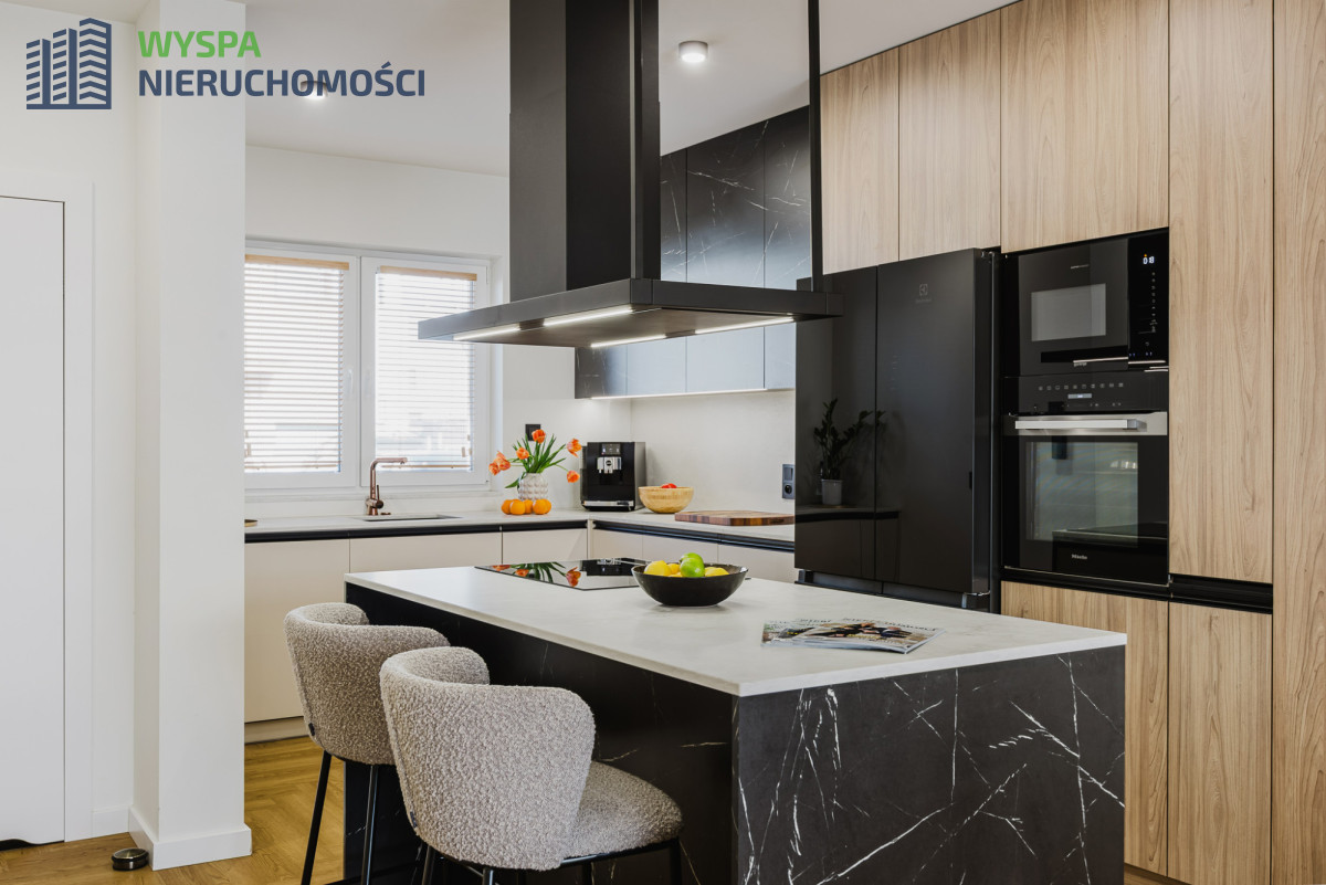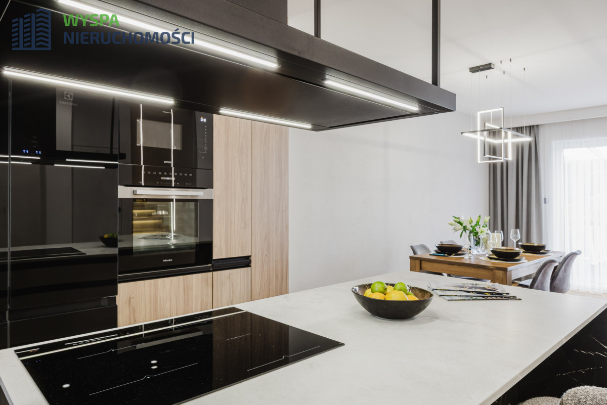 *Kuchnia marzeń:* ? Nowoczesna kuchnia to prawdziwy raj dla miłośników gotowania. Blaty wykonane ze spieku tworzą spójną kompozycję, a przestronność zabudowy zapewnia dużo miejsca do przechowywania. Pomimo swojej pojemności, kuchnia nie sprawia wrażenia masywnej, zachowując lekkość i elegancję. Wśród rozwiązań, na które warto zwrócić uwagę jest podświetlana, przeźroczysta szafka na kieliszki i szkło oraz specjalna półka na wina, która zapewnia odpowiednią temperaturę trunków. Sprzęty z najwyższej klasy ułatwią przygotowanie potraw.