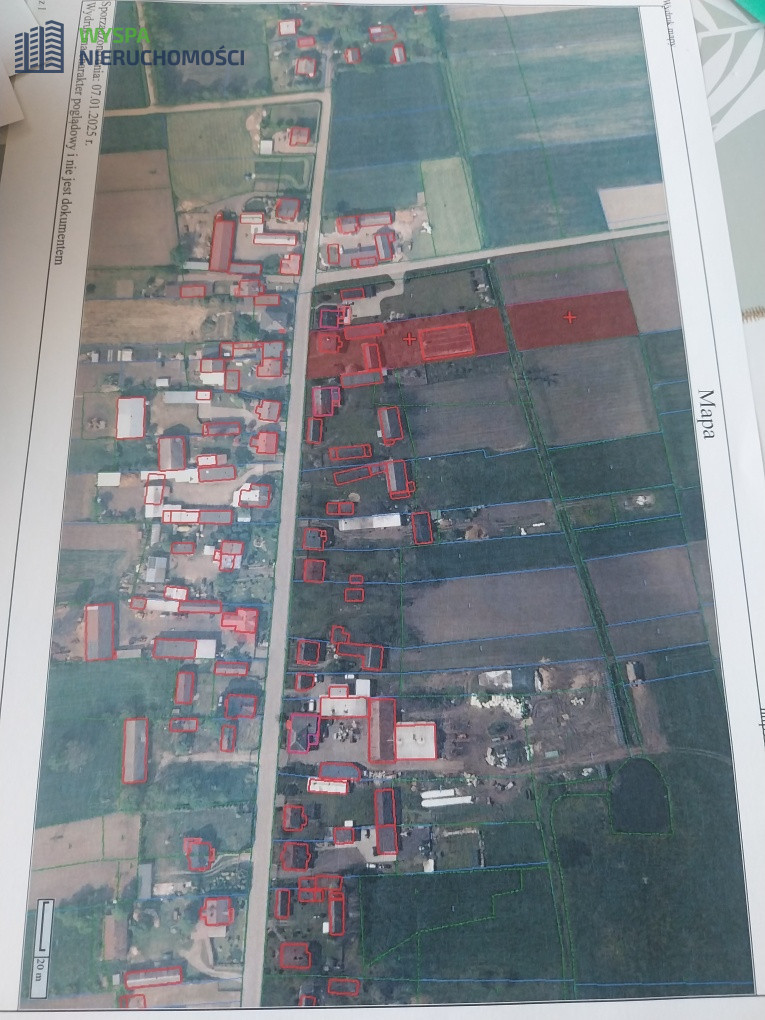 Część gospodarcza posesji ogrodzona, poza częścią ogrodzoną obszerna działka rolna o powierzchni około 2500 m²