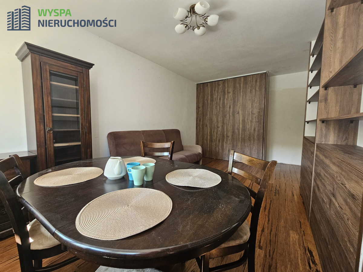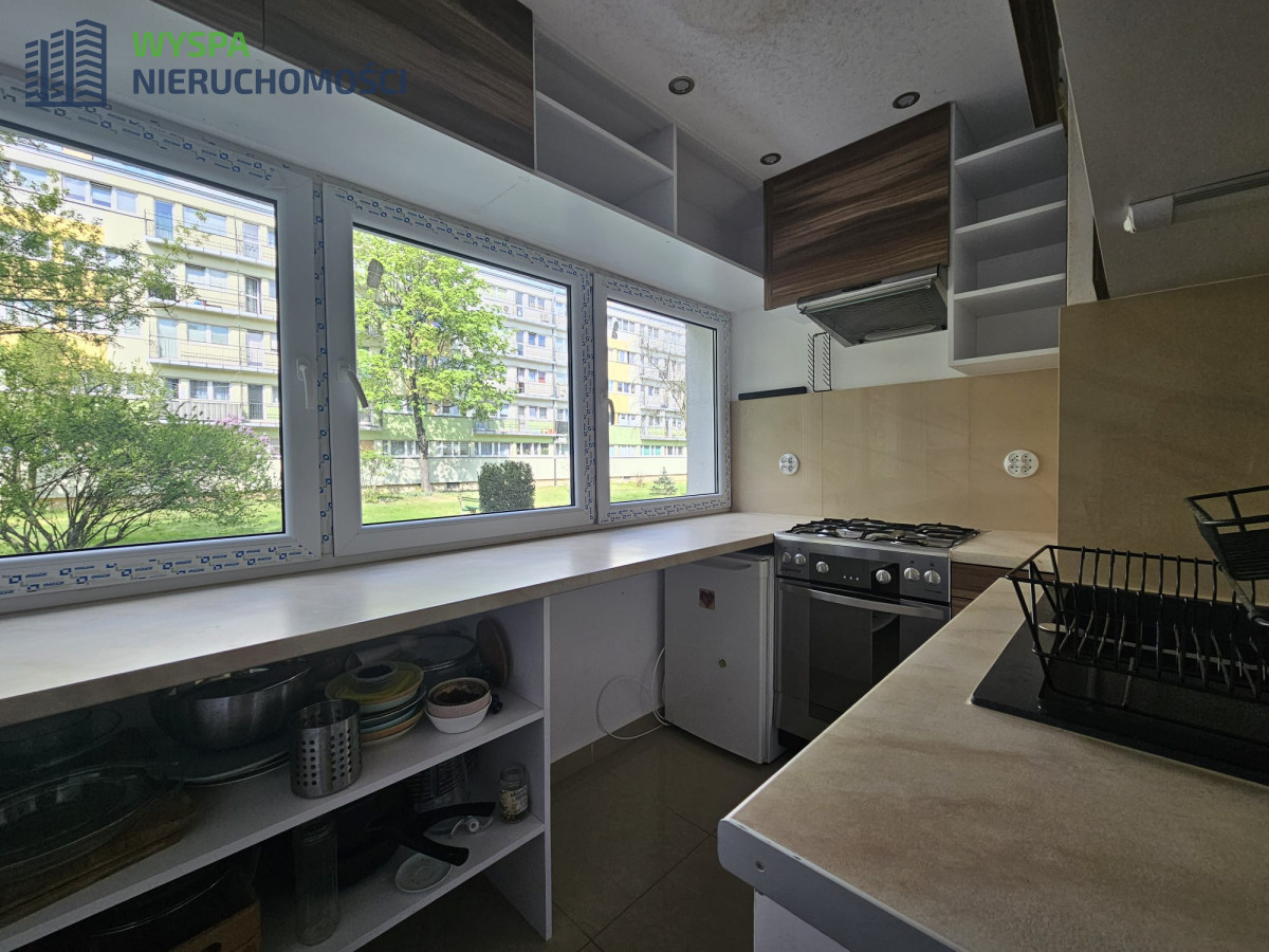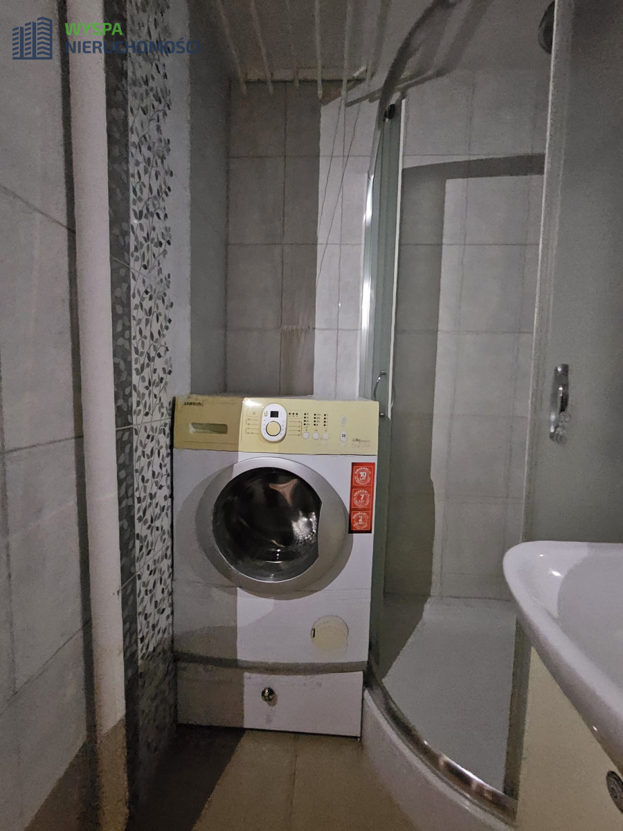 Mieszkanie jest w pełni umeblowane i gotowe do zamieszkania. Kuchnia wyposażona jest w sprzęt AGD, a łazienka w prysznic i pralkę.
