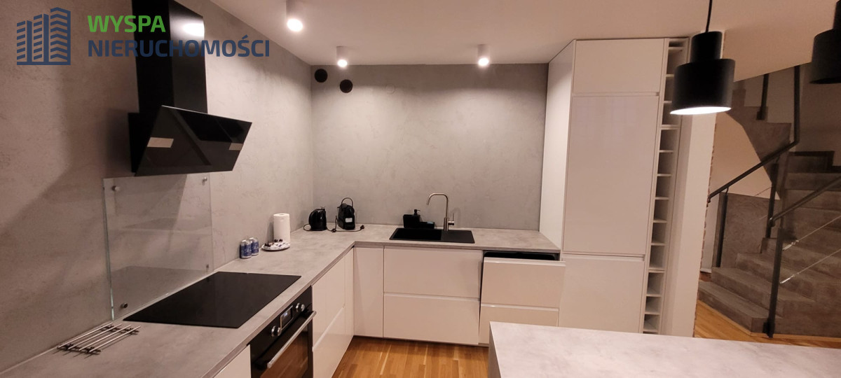 Otwarte, wysokie wnętrze z dużym salonem i aneksem kuchennym - idealne do pracy twórczej, spotkań, ekspozycji sztuki lub po prostu życia bez ograniczeń.