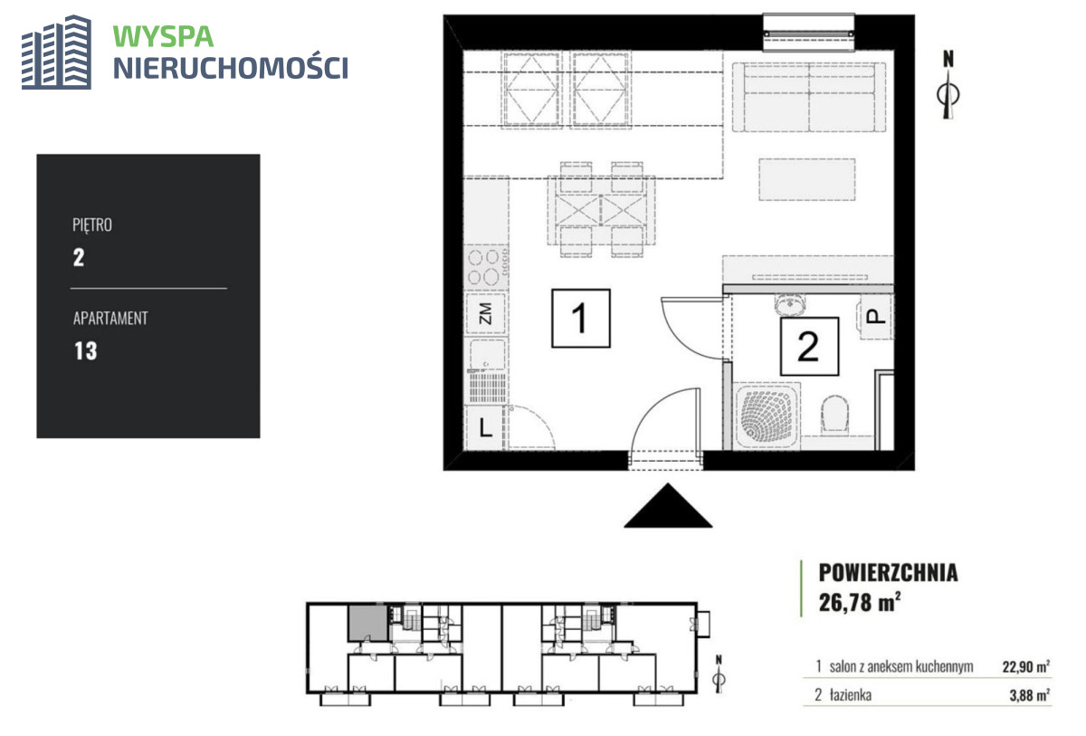 - 26 nowoczesnych apartamentów w każdym z budynków