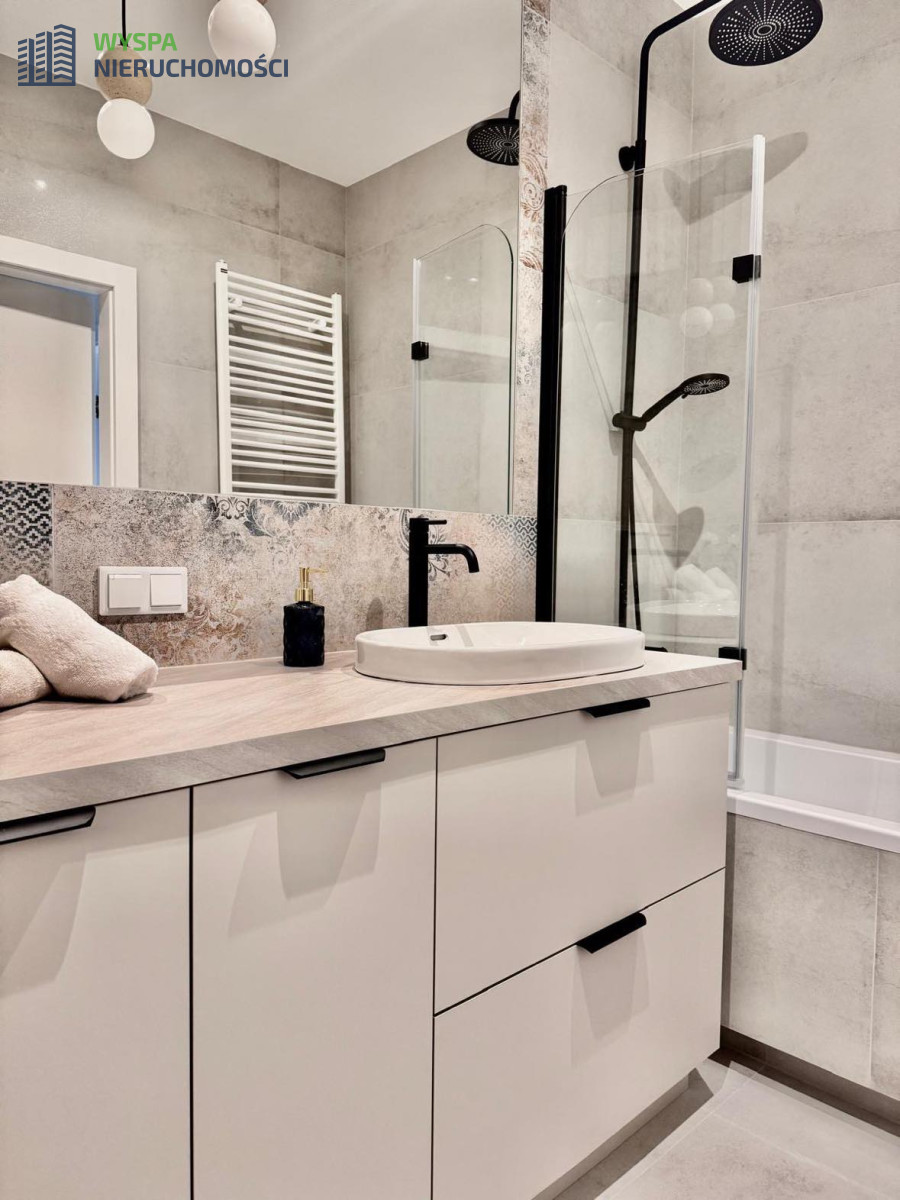 Mieszkanie jest wykończone w wysokim standardzie według projektu i pod nadzorem projektanta wnętrz.