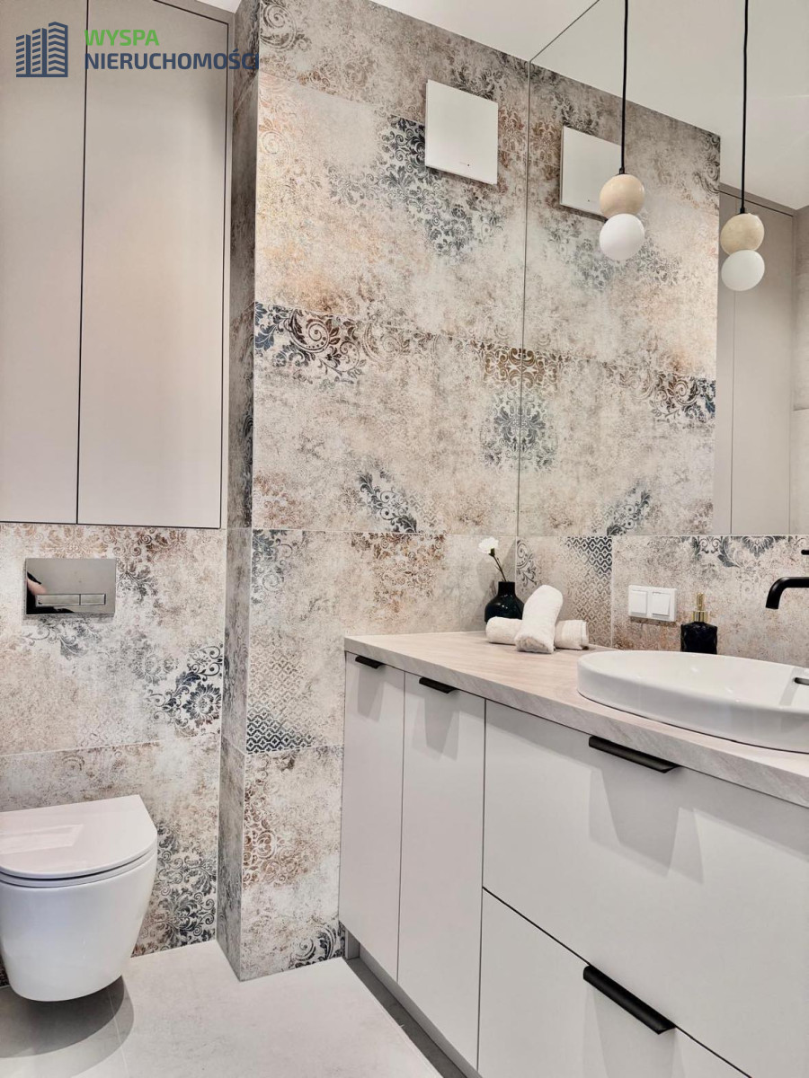 Mieszkanie obecnie jest wykończone w wysokim standardzie według projektu i pod nadzorem projektanta wnętrz.