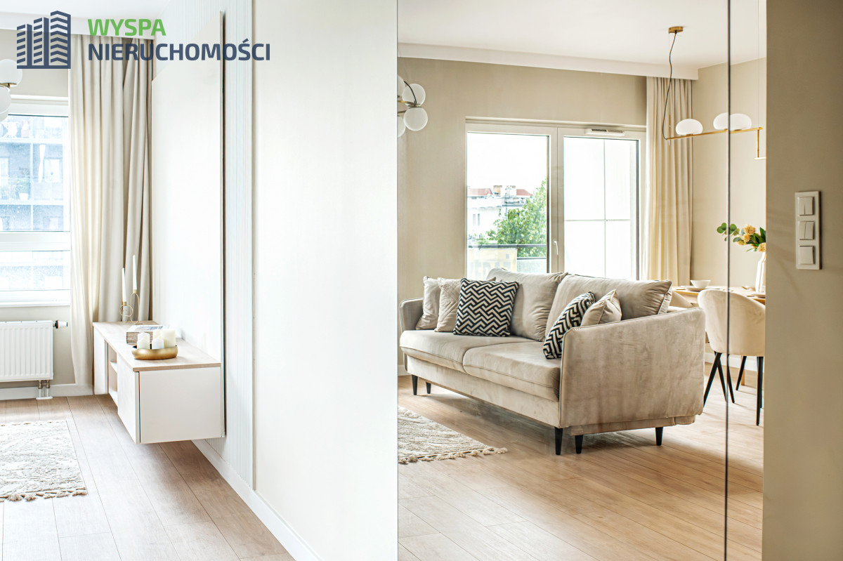 Mieszkanie nowe, wykończone ze stanu deweloperskiego,,w jasnych kremowo - beżowych odcieniach, w pełni wyposażone, zaprojektowane przez projektanta wnętrz z dbałością o każdy szczegół. Do wprowadzenie od zaraz! Oddzielona wyraźnie część wypoczynkowa z aneksem kuchennym od sypialni. Ogrzewanie z cieplika miejskiego.