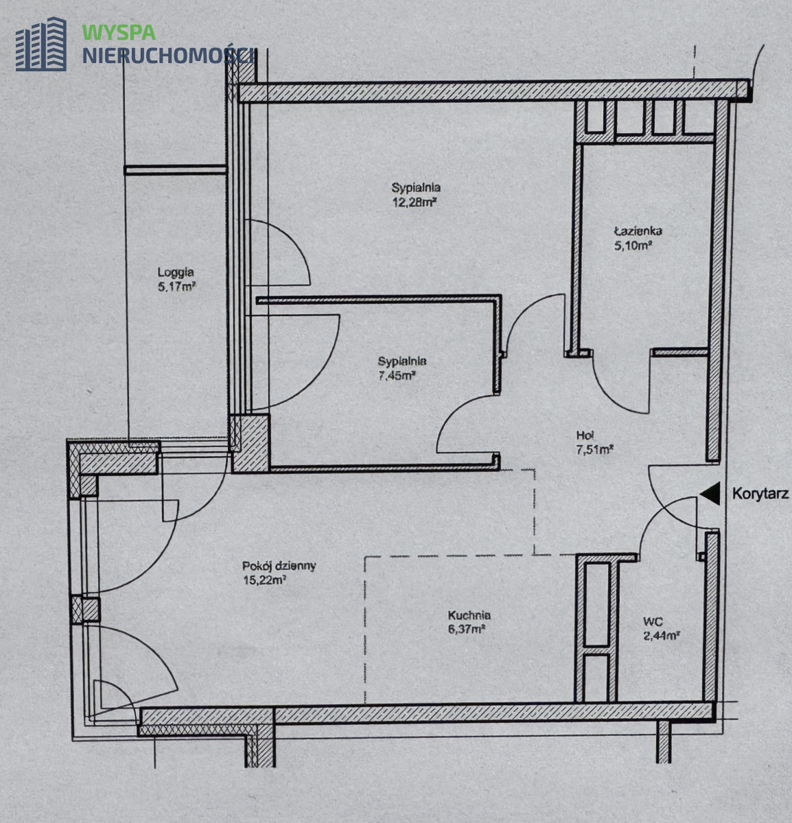 - pomieszczenie gospodarcze - ok. 2,44 m2