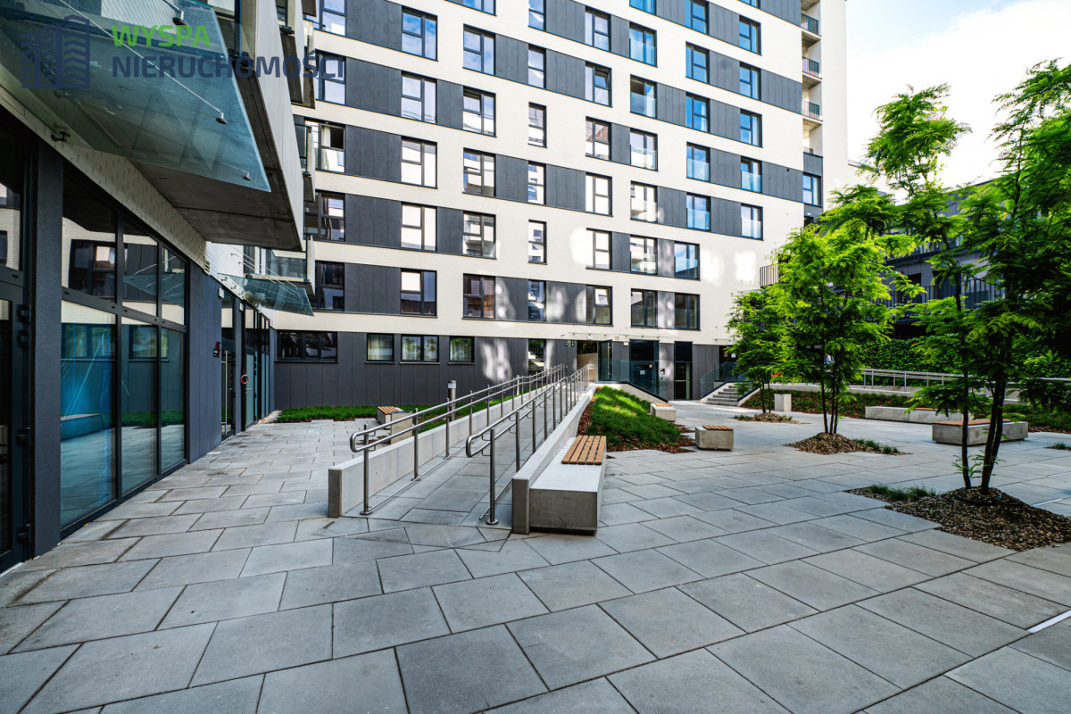Pięciopiętrowy apartamentowiec o unikalnej architekturze wybudowany w 2023 roku przez renomowaną firmę deweloperską. Wyjątkowe, ekskluzywne osiedle. Elegancka, nowoczesna elewacja, Wokół budynku zieleń i elementy małej architektury. Ciche i spokojne otoczenie sprzyja wypoczynkowi. Pod budynkiem podziemna hala garażowa, gdzie można zaparkować samochód. Można dokupić do mieszkania miejsce postojowe. Na terenie osiedla wśród licznych udogodnień dla mieszkańców przewidziano możliwość ładowania pojazdów elektrycznych, rowerownie, gdzie można schować wózek lub rower, paczkomat. Wokół mnóstwo zieleni, wspólna przestrzeń wypełniona roślinnością m.in. na patio i tarasach na dachach. Wspólny Living Room stanowi przestrzeń do pracy i relaksu.