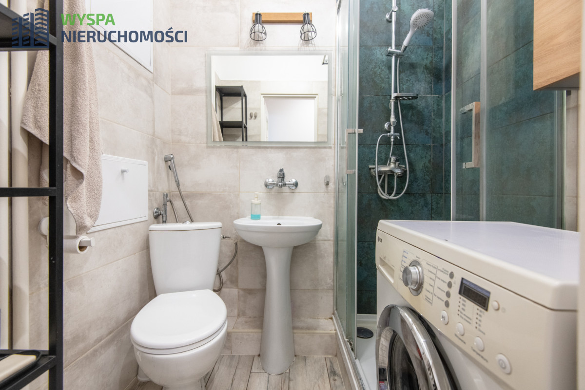 Łazienka: Z kabiną prysznicową, funkcjonalna.