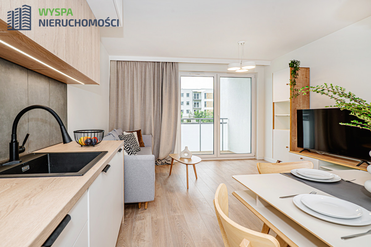 ✅ Przestronny salon z aneksem kuchennym - idealne miejsce do odpoczynku lub wspólnego gotowania z rodziną - 23,28 m2, z wyjściem na balkon.