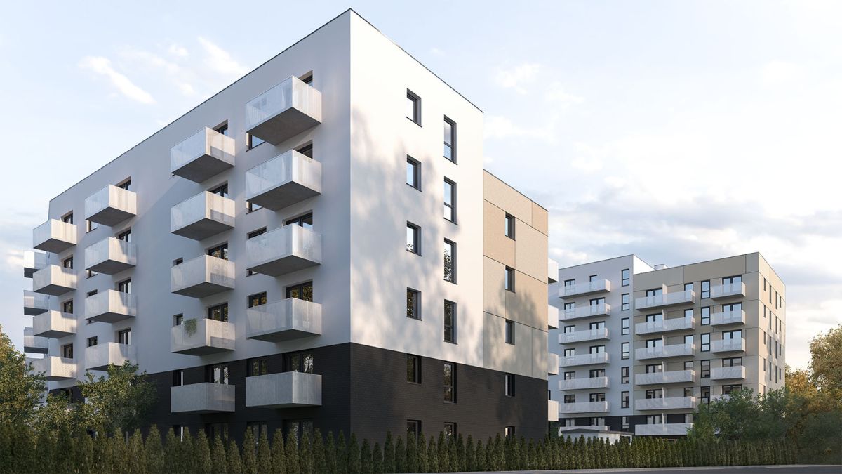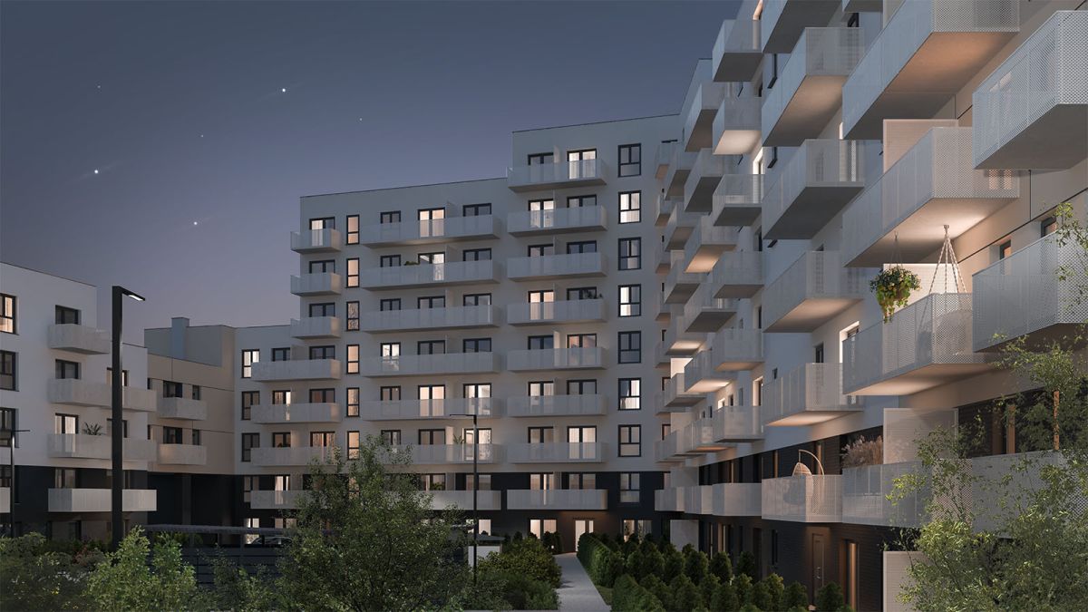 Płyty balkonowe zostały wykonane z łączników termoizolacyjnych, co zapobiega utracie ciepła z wnętrza mieszkania, a duże okna portfenetrowe zapewniają