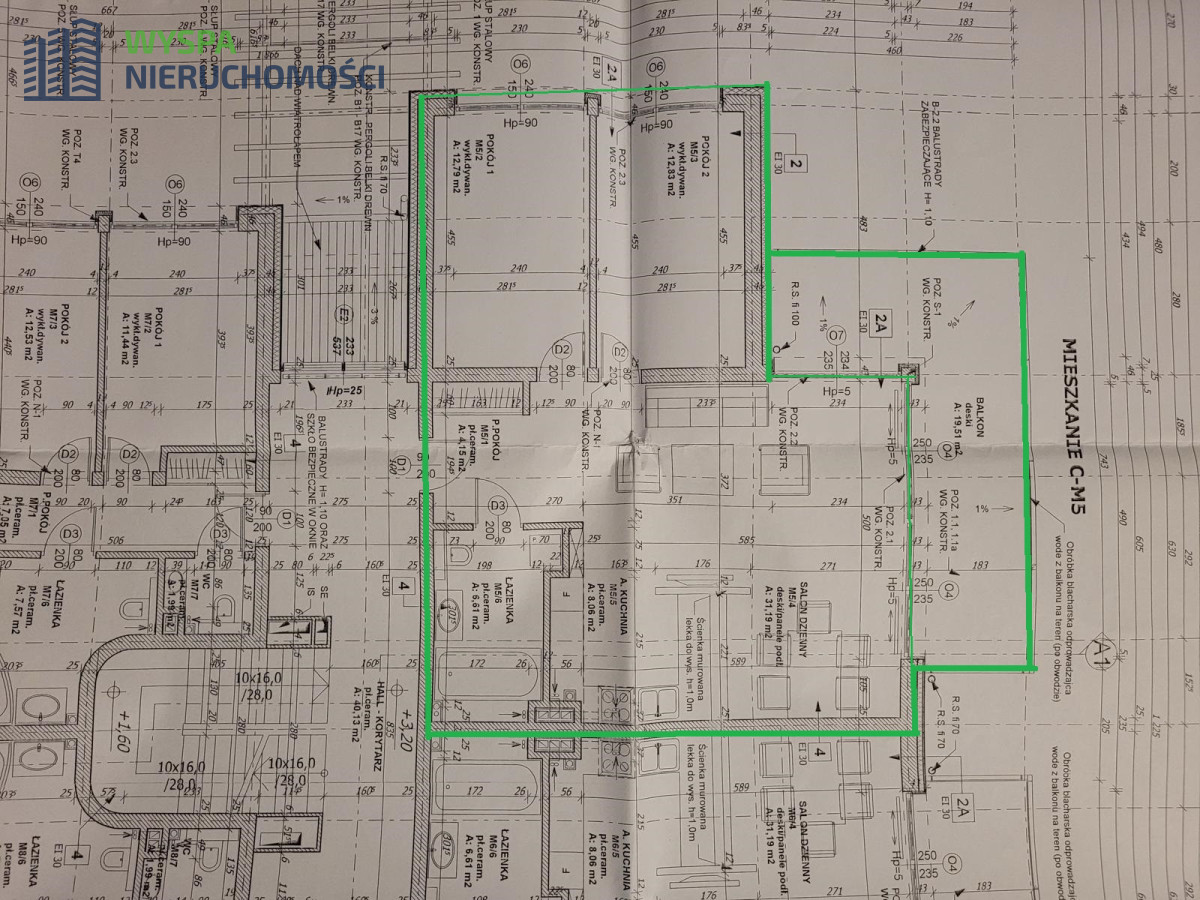 Powierzchnia mieszkania: funkcjonalny układ obejmujący przestronny salon z aneksem kuchennym (39,25m2), dwie ustawne sypialnie (12,82m2 i 12,79m2), korytarz (4,15m2) oraz dużą łazienkę wyposażoną w wannę (6,61m2).