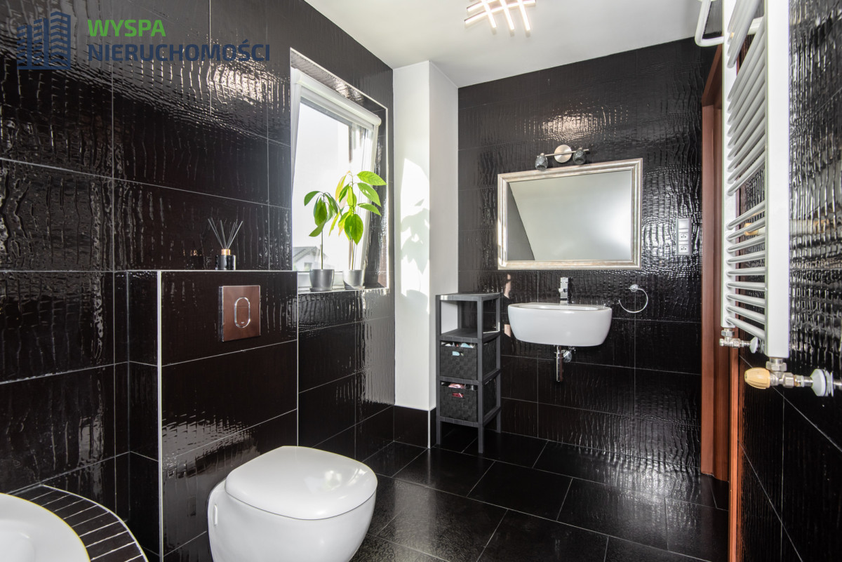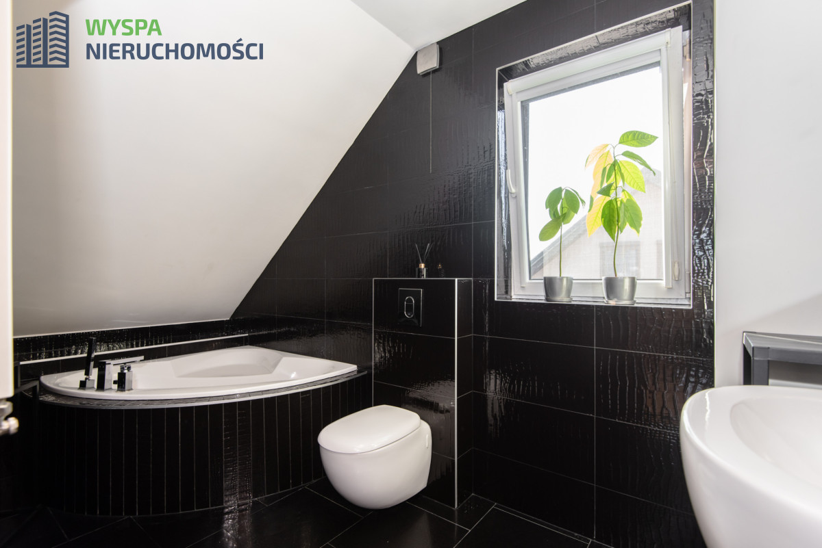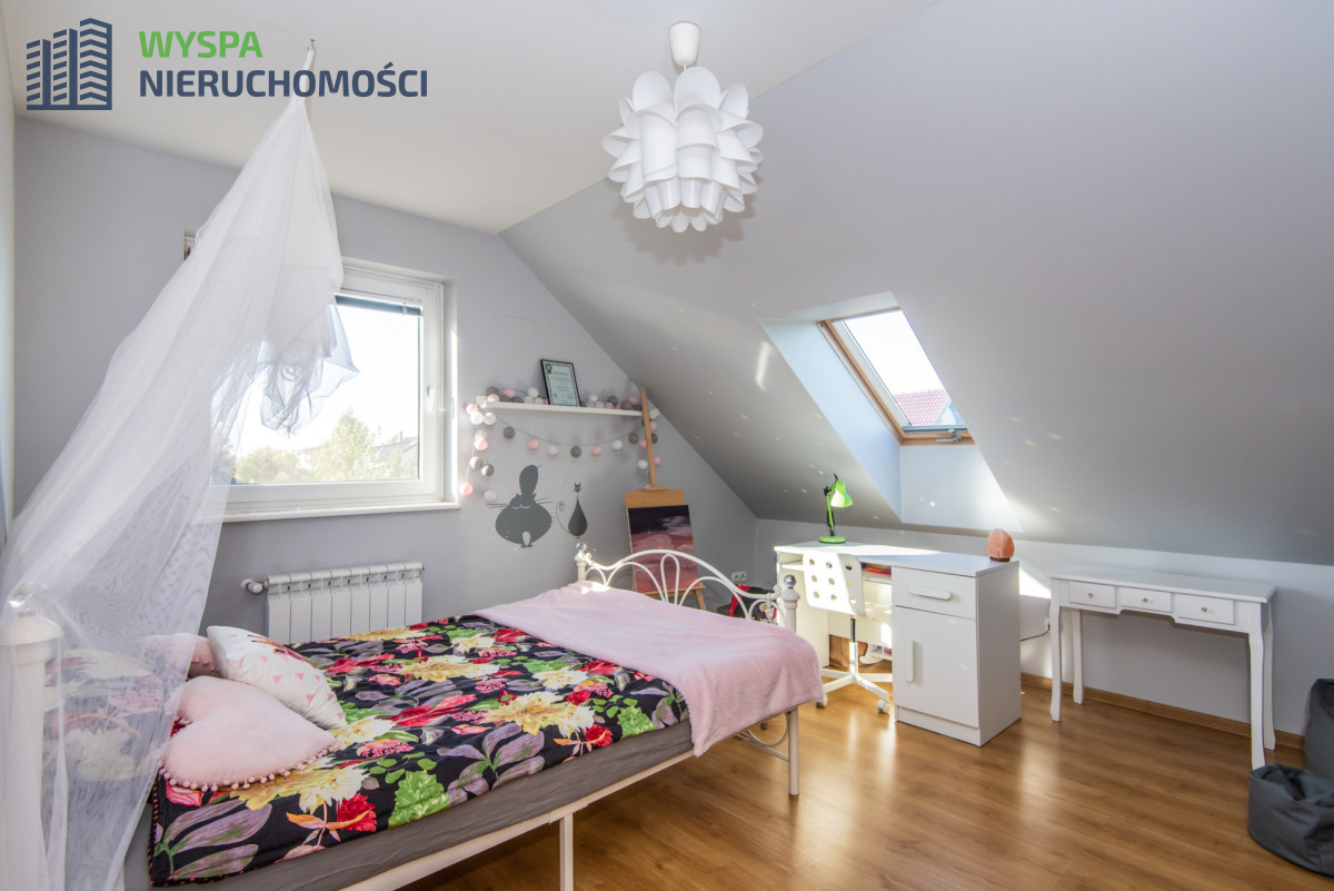 Poddasze użytkowe składa się z trzech komfortowych sypialni (6,13m2, 9,6m2, 9,6m2), łazienki z oknem (4,34m2) oraz garderoby (1,72m2). Podane wartości to powierzchnia użytkowa, dodatkowo do każdego z pomieszczeń dochodzi metraż poniżej 190cm wysokości (skosy), której mamy łącznie przeszło 21m2.