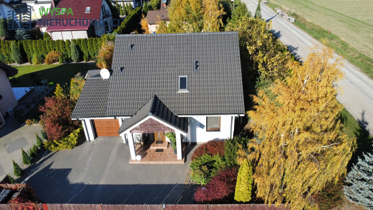 Nieruchomość położona jest na osiedlu domków jednorodzinnych, co gwarantuje spokojną i bezpieczną okolicę. Dojazd do domu zapewnia utwardzona, gruntowa droga. Budynek posiada solidne wykończenie, dach pokryty jest ceramiczną dachówką.
