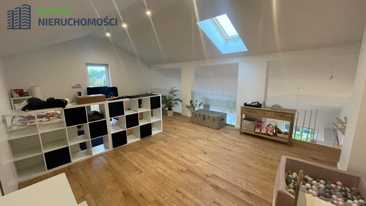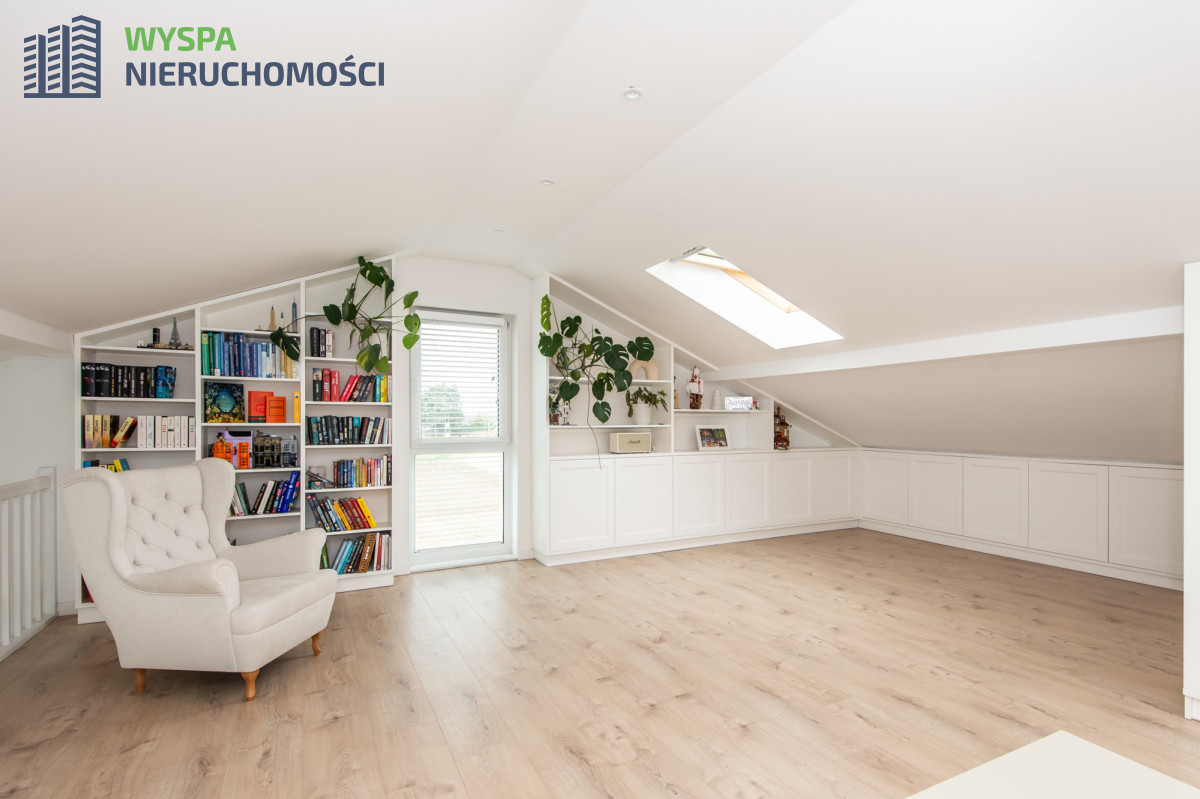 Powierzchnia poniżej 1,9m wynosi po podłodze około 20m2 i może służyć jako strych czy garderobę.