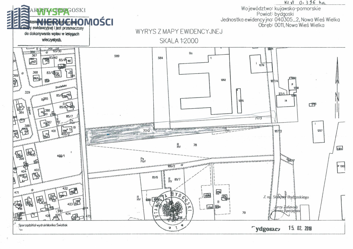 Przedmiotem sprzedaży jest działka rolna znajdująca się w Nowej Wsi Wielkiej , powiat bydgoski, województwo kujawsko-pomorskie w odległości około 18 km na południowy wschód od Bydgoszczy