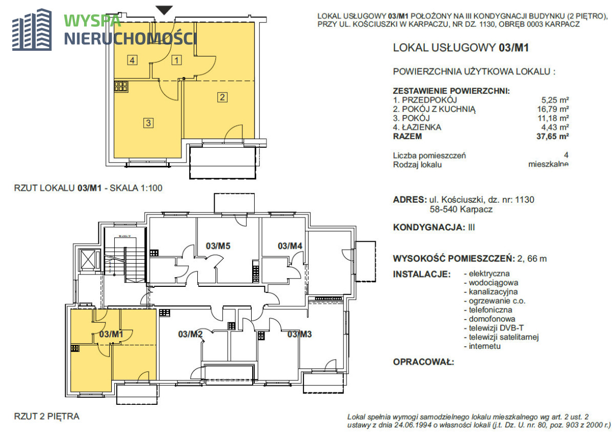 Przedmiotem sprzedaży jest kawalerka usytuowana na parterze 4-ro kondygnacyjnego apartamentowca położonego w Karpaczu.