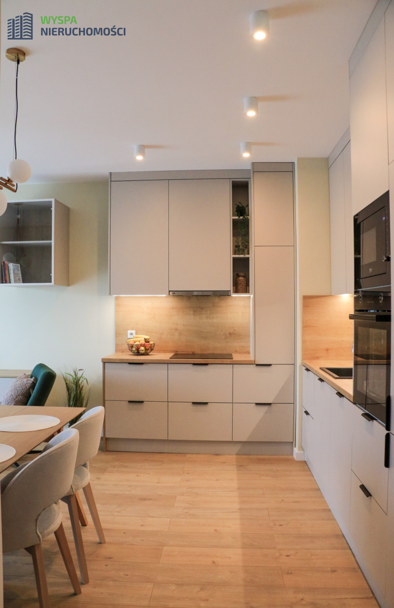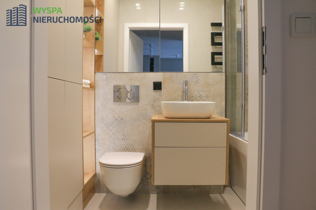 Wykończone jest pod klucz, w wysokim standardzie, według projektu i pod nadzorem projektanta wnętrz. W ogłoszeniu widzimy realne zdjęcia. Mieszkanie jest do pierwszego wprowadzenia.