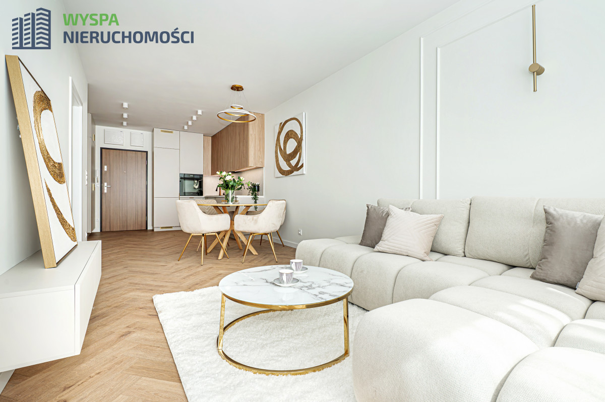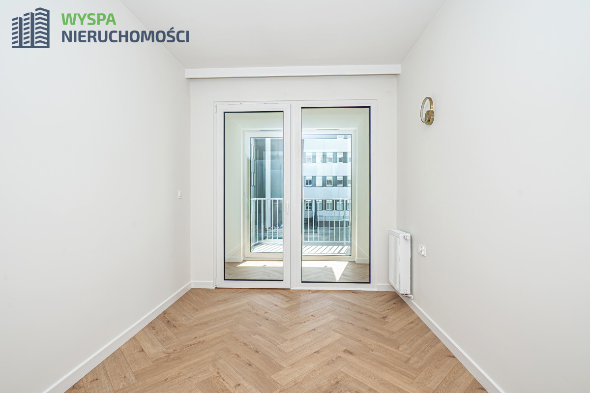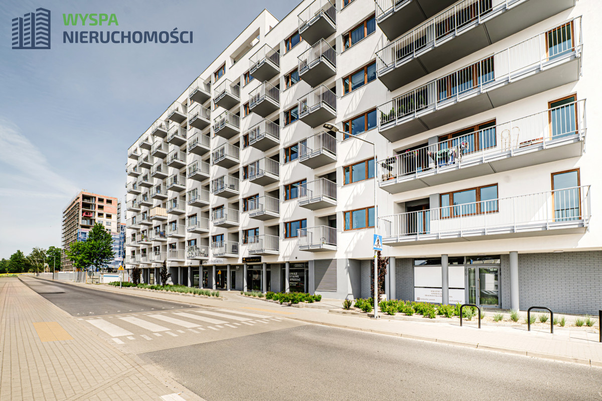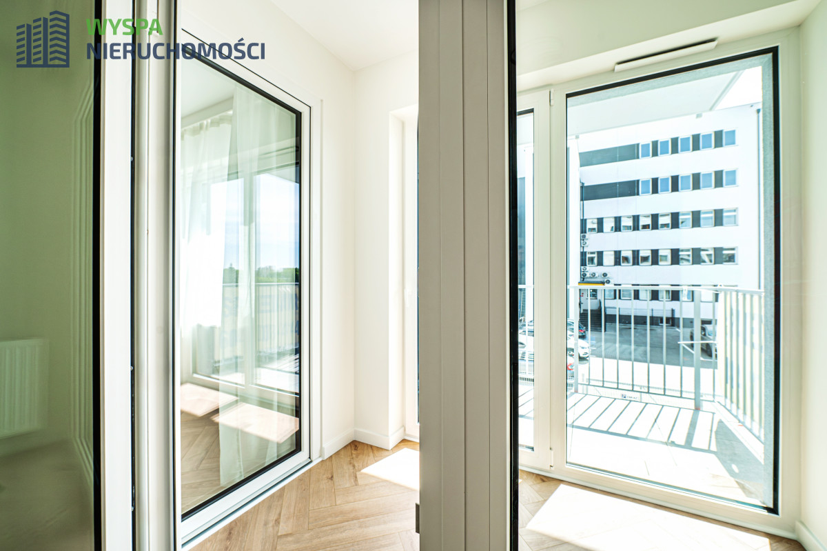 46 m2 (salon z aneksem kuchennym i sypialnia) z balkonem, położonego na pierwszym piętrze w nowym budynku z windą przy ulicy Świerzawskiej na poznańskim Grunwaldzie - dzielnicy uważanej za jedną z najbezpieczniejszych w Poznaniu.