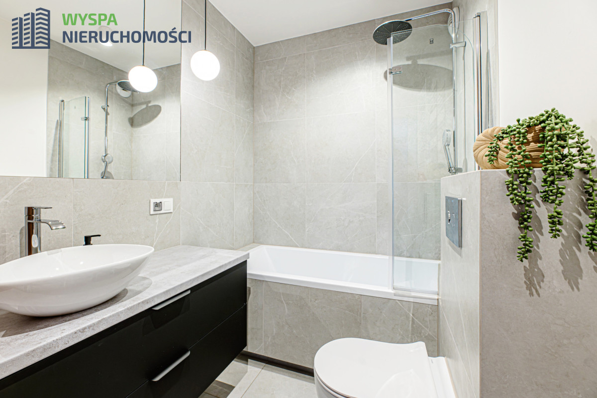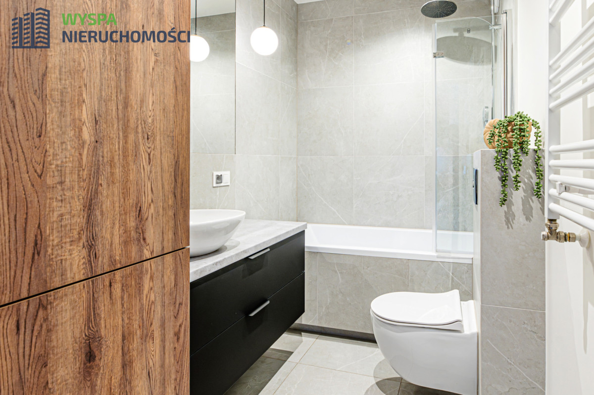 Mieszkanie zostało zaprojektowane przez architekta wnętrz, z dbałością o każdy szczegół, materiały użyte do jego wykończenia są najwyższej jakości: na podłogach w pokojach panele o wysokim stopniu ścieralności, w łazience wysokogatunkowe płytki. Wszystko tu kolorystycznie spójne i wykonane z najwyższą precyzją. W salonie drzwi balkonowe prowadzące z salonu na przestronny balkon, z którego, pokonując cztery stopnie, schodzimy do ogrodu. Mieszkanie jasne, słoneczne. Ogrzewanie miejskie.