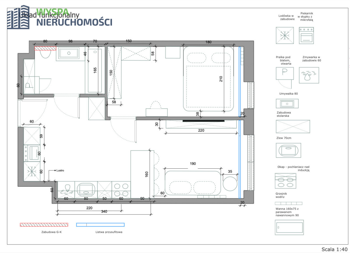CHARAKTERYSTYKA MIESZKANIA:- Powierzchnia: 40,55 m²