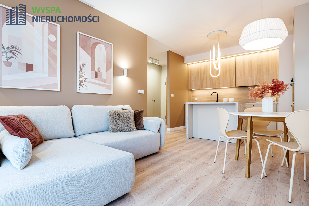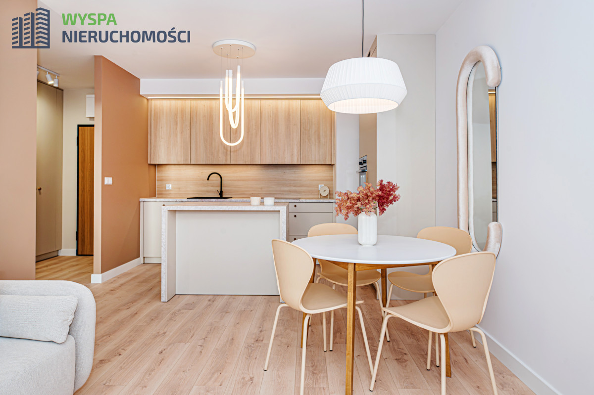 Mieszkanie zostało zaprojektowane przez architekta wnętrz, materiały użyte do jego wykończenia są najwyższej jakości: na podłogach w pokojach panele o wysokim stopniu ścieralności, w łazience wysokogatunkowe płytki. Wszystko tu kolorystycznie spójne i wykonane z najwyższą precyzją. Mieszkanie bardzo słoneczne. W salonie podwójne drzwi balkonowe, co powoduje, że do mieszkania wpada bardzo dużo światła. Ogrzewanie miejskie.