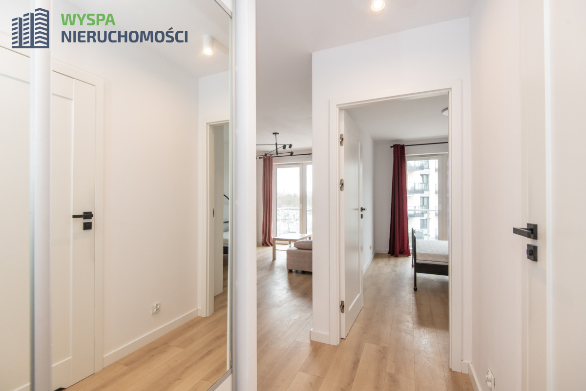 Mieszkanie składa się z jasnego salonu z aneksem kuchennym, oddzielnej sypialni, łazienki oraz przedpokoju z pojemną szafą w zabudowie. Dodatkowym atutem jest balkon oraz wschodnia ekspozycja, która zapewnia przyjemne poranne światło i dobre doświetlenie wnętrza.